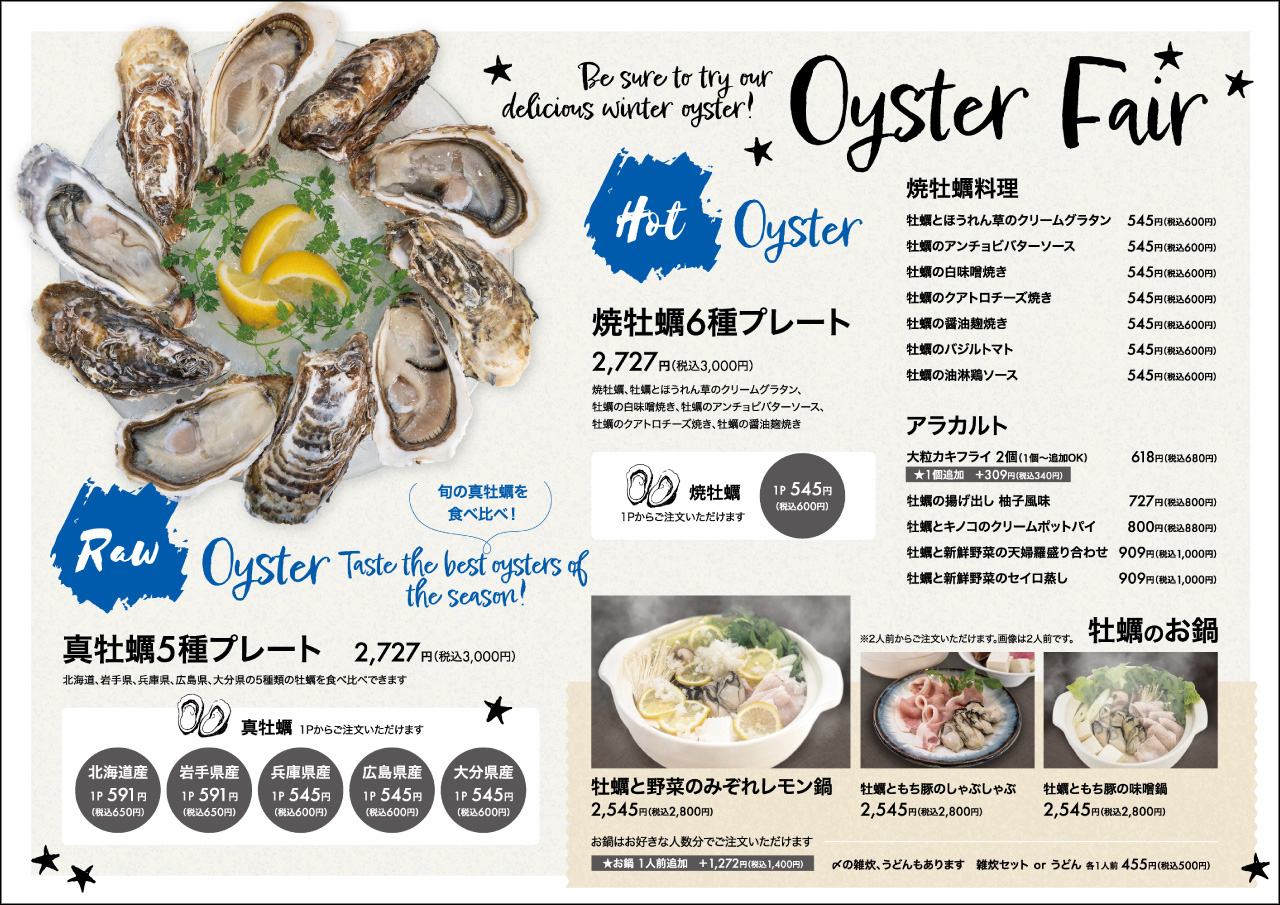 旬の牡蠣を食べ比べ!牡蠣フェア開催中!
